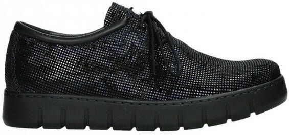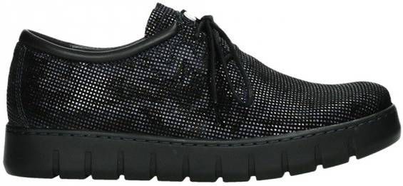 Veterschoenen 'Vic' van WOLKY van rundsuèdeleer met folieprint. Leren binnenwerk met iets zacht verdikt, anatomisch gevormd verwisselbaar voetbed, geschikt voor orthopedische inlegzolen. Rubberzool. Comfortwijdte 'G' voor normale tot bredere voeten.