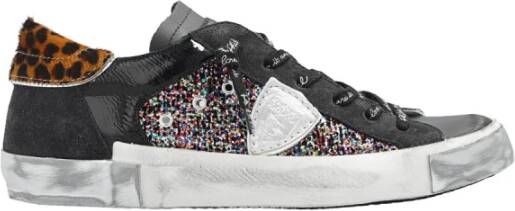Black `Prsx` sneakers van Philippe Model. Ontworpen door L? Er heeft dit SNE-paar veelkleurige glitter, logo-stekkers, bruine en zwarte high-l-T`s met een diermotief, vintage effect en rubberijs in zwart, wit en s? LV gekleurd. Deze beschrijving wordt automatisch vertaald.